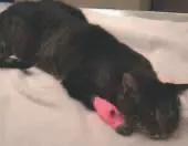 Selecting the appropriate length and gauge needle attached to a syringe, draw up the necessary amount of lidocaine based on the patient's size (2 to 8 mg/kg maximum total infiltrative dose; 0.2 ml of 2% lidocaine should be more than sufficient for an average-sized cat and the maximum feline dose should not exceed 2 mg/kg).