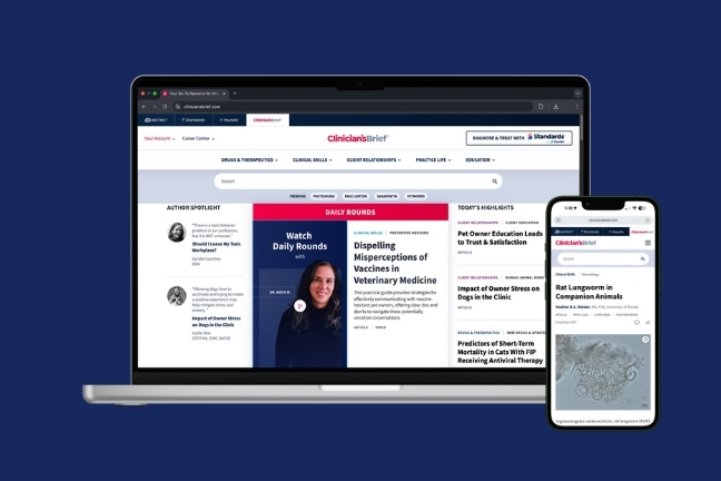 For decades, Clinician’s Brief has helped veterinary professionals make critical decisions in veterinary medicine, earning it the #1 spot as the most essential publication for small animal veterinarians. Today, Clinician’s Brief provides concise, trusted guidance that helps veterinarians navigate their most immediate clinical and professional challenges and prepares them for their day, every day.