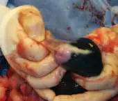 Placentas are easy to detach when the c-section is performed at the expected due date (emergency c-section for a dystocia or perfectly timed elective c-section) but may be more difficult in preterm animals. Similarly, bleeding from the maternal endometrium is not a great concern when the c-section is perfectly timed, but it can be profuse if the surgery is performed too early. For this reason, difficult-to-detach placentas are more and more often left in situ to be expelled naturally during the next few days or resorbed.