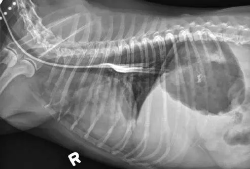 In this dog, the proximal end of the tube is not associated with the trachea.