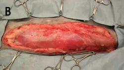 The skin, mammary tissue, and underlying fat should be removed (Figure 3). The rectus fascia and muscle should not be removed.