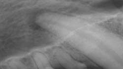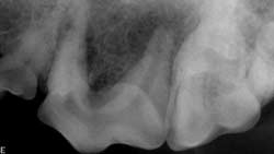 Definitive DiagnosisDental radiographs are obtained to determine or verify which tooth is affected. The affected tooth root will have a periapical lucency around the apex (Figures 3 through 5. View larger image), indicating bone loss.