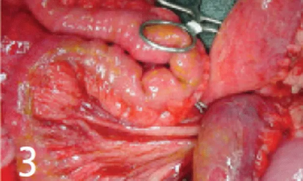 Postmortem FindingsThe abdominal cavity usually contains a large volume of cloudy fluid that is gray, creamy, or red. It may contain flocculent material (Figure 3). The amount of accumulated exudate varies widely; it may spread to the whole peritoneum, or be walled off by the omentum and viscera. The serosal surfaces may adhere to each other, and it is not uncommon to find the omentum adhered to the infected organ. The peritoneal lining and visceral organ surfaces may have petechiae or ecchymotic lesions, and the peritoneal lining may be dull rather than glistening.
