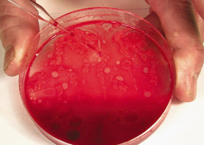 Smears do not have to be made immediately when collected with EDTA, but they should be prepared within minutes after collection because bone marrow cells (especially granulocytic cells) degenerate rapidly. After mixing the aspirated marrow with the anticoagulant, remove the needle and expel the marrow into a Petri dish. For accurate bone marrow evaluation, smears must contain marrow particles (stroma and associated cells). Marrow particles appear as small, white grains in the blood-contaminated aspirate material.