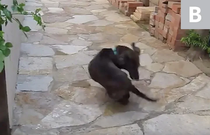 A 7-year-old neutered male dachshund with a 6-year history of circling and tail chasing. Although situations that caused the dog excitement (eg, noise, visitors) initiated bouts of circling, he would also circle when alone and in the absence of identifiable triggers (see Video). MRI of the brain was unremarkable, but spinal MRI revealed severe right-sided disk herniation from L6 to L7. Clinical signs did not improve following dorsal lumbosacral decompression surgery and treatment with NSAIDs on recovery. A diagnosis of CD with intervertebral disk disease secondary to chronic circling was made. Clomipramine (2 mg/kg q12h) and a behavior modification plan were implemented. Circling decreased in frequency and intensity but occasionally occurred in periods of heightened stress (eg, crying baby).