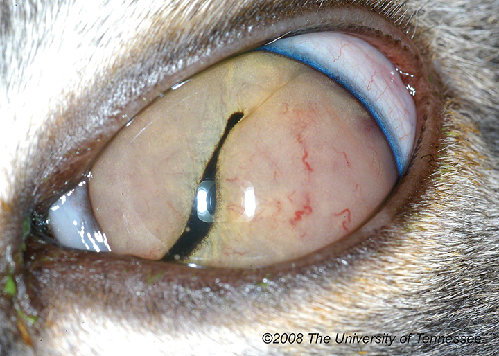 The most common intraocular tumor in both cats and dogs is primary uveal melanoma (Figure 9).6,7 Although these tumors frequently exhibit nonmetastatic but potentially locally invasive behavior in dogs, a greater potential for metastasis is present in cats with iridal melanoma (Figure 10). Surgical removal of the globe is curative if metastasis has not occurred.