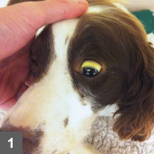 FIGURE 1 Jaundice in an English springer spaniel with liver disease.