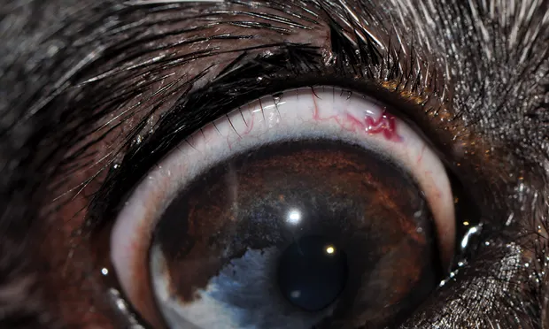 Multiple distichiae of the upper and lower eyelid of a dog.