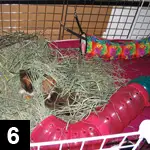 Figure 6. Tunnels, deep hay, scattered food treats, and bonded cage mates can enrich the quality of life for guinea pigs. Courtesy of Rebecca Howell