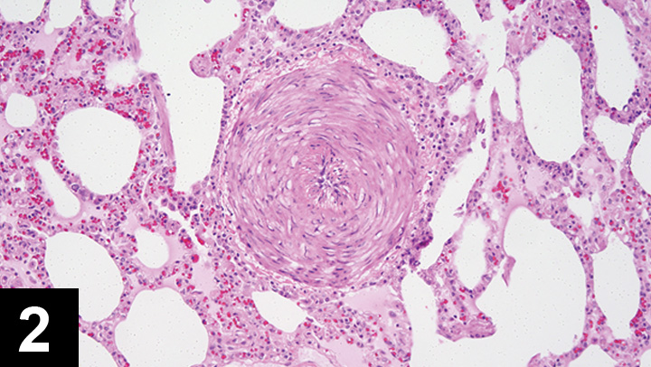 Figure 2. Histopathology of the pulmonary artery of a cat infected with D immitis. Courtesy of Dr. Julia A. Conway
