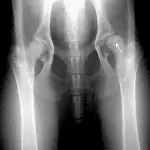 Figure 2A. The capital physis of this dog, which presented with hip pain, appears slightly widened.