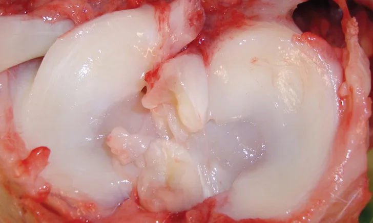 Treatment for meniscal tears depends on the tear location and severity.14,24,28-30 If the entire caudal pole is damaged, it should be removed via caudal pole hemi-meniscectomy.44 If only the inner rim of the caudal pole is damaged, a partial meniscectomy (ie, removal of the damaged inner rim), leaving the periphery intact and possibly preserving some of the function of the meniscus (Figure 4), can be performed. The normal meniscus is generally left in situ.