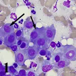 In cases of benign prostatic hyperplasia, cells should resemble those of a normal prostate. When inflammation is present, numerous neutrophils are usually seen in addition to macrophages, lymphocytes, and plasma cells. With bacterial prostatitis, phagocytized and free bacteria are seen and neutrophils are often vacuolated and exhibit karyolysis. Adenocarcinoma cells of the prostate are usually large, ranging in size from 20 to 80 microns in diameter. The cytoplasm is vacuolated and may contain eosinophilic material. Nuclei are large, round to oval, and multiple nucleoli are often seen. In addition, mitotic figures and multinucleate cells are often seen. Transitional cell carcinoma cells appear similar to adenocarcinoma cells.