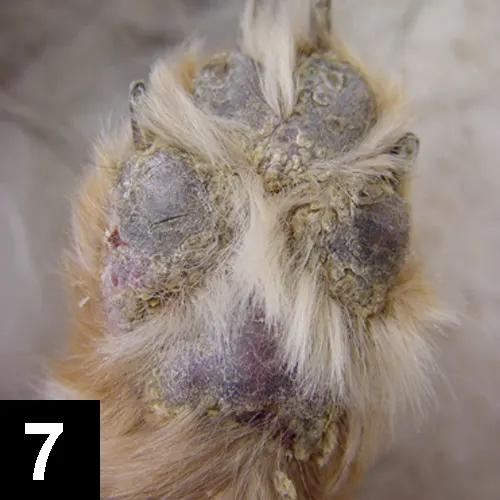 The skin commonly develops scaling and crusting lesions in response to a variety of inflammatory or metabolic insults. Some characteristics of the lesions can be suggestive of a specific condition; in other situations, the appearance of the lesions may be nonspecific but clues can be derived from location, distribution, age of onset, breed, presence and degree of pruritus, and any other clinical signs.