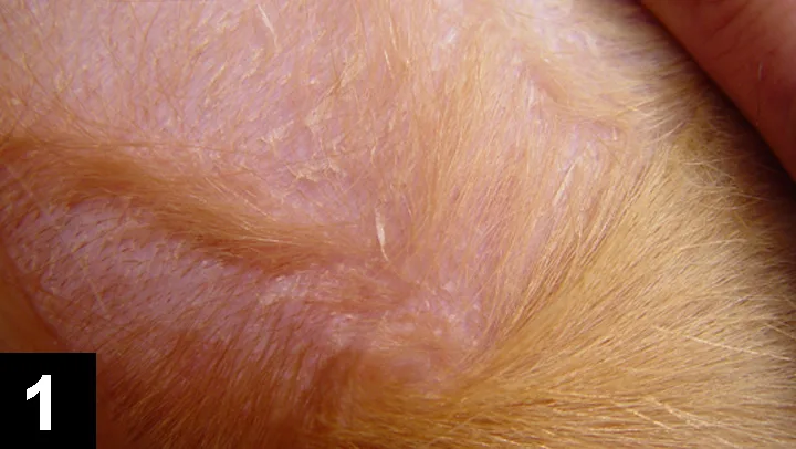 FIGURE 1 Diffuse, delicate scaling on the dorsum of a 2-year-old male golden retriever