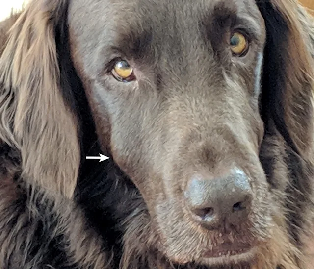 Sam was presented again a few months later for swelling below his right eye. An abscess from the right maxillary fourth premolar was presumptively diagnosed, and the tooth was sectioned and removed with a closed extraction technique. Dental radiography, again, was not performed.