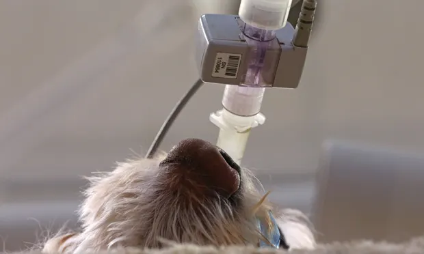 Normal respiratory rates for dogs and cats often vary based on size and positioning with most dogs breathing at 6–10 breaths/minute and cats at 16–20 breaths/minute. In a patient that is not spontaneously ventilating while under anesthesia, depth indicators should be assessed. If deemed adequate, the inhalant should be decreased. Intermittent manual and/or mechanical ventilation may need to be considered until spontaneous ventilation resumes.