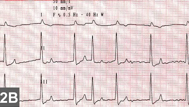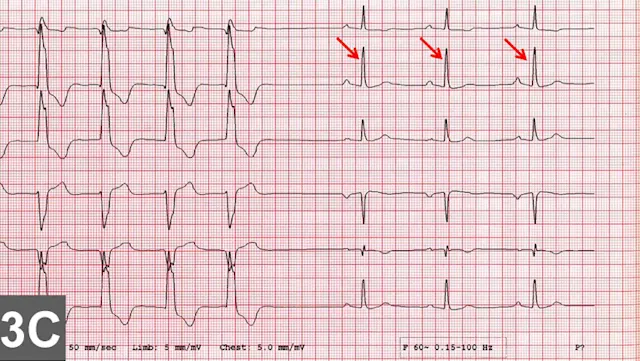 High grade: No two P waves are consecutively conducted (2:1 conduction ratio or higher); therefore, it cannot determine whether the PR interval is lengthening before blocked P waves (Figure 5C).