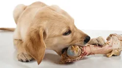 A bone large enough that it cannot be chewed into pieces is unlikely to cause GI obstruction; however, bone chewing is a frequent cause of fractured teeth. Smaller or splintered bones are at risk for obstructing the esophagus, stomach, or intestines. There is a conception that feeding raw bones may be safer than feeding cooked bones, although there is no evidence for or against this concept. Raw bones can carry the same inherent risks for pathogen contamination as does consumption of raw meat. Furthermore, bones that become stuck in the stomachor intestine may perforate the gut, potentially causing fatal peritonitis.