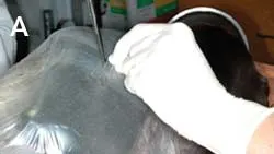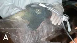 Apply sterile water-soluble lubricant to the wound, clip a wide margin of hair around the wound, and aseptically prepare the wound and surrounding skin. Removal of oils from skin facilitates an airtight seal for the VAC. Debride the wound as needed to remove necrotic tissue, debris, and eschar.