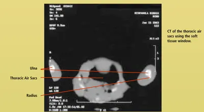 The avian respiratory system is extensive and complex. Becoming familiar with the normal presentation of respiratory anatomy through use of different imaging techniques will enhance a clinician's ability to make a diagnosis. This is the first of two articles using radiographic images and computed tomography (CT) to compare normal respiratory structures of the avian respiratory system. Note that the size of the patient dictates the size of the CT image. In this case, the patient is very small; thus, the images have become somewhat blurry with enlarging. Nevertheless, contrast is an important factor in CT imaging and the structures are quite clear. This article focuses on the body; the next part will address the head. For larger images, please click on the PDF icon at the top of the page to download the print version of the article in its entirety.